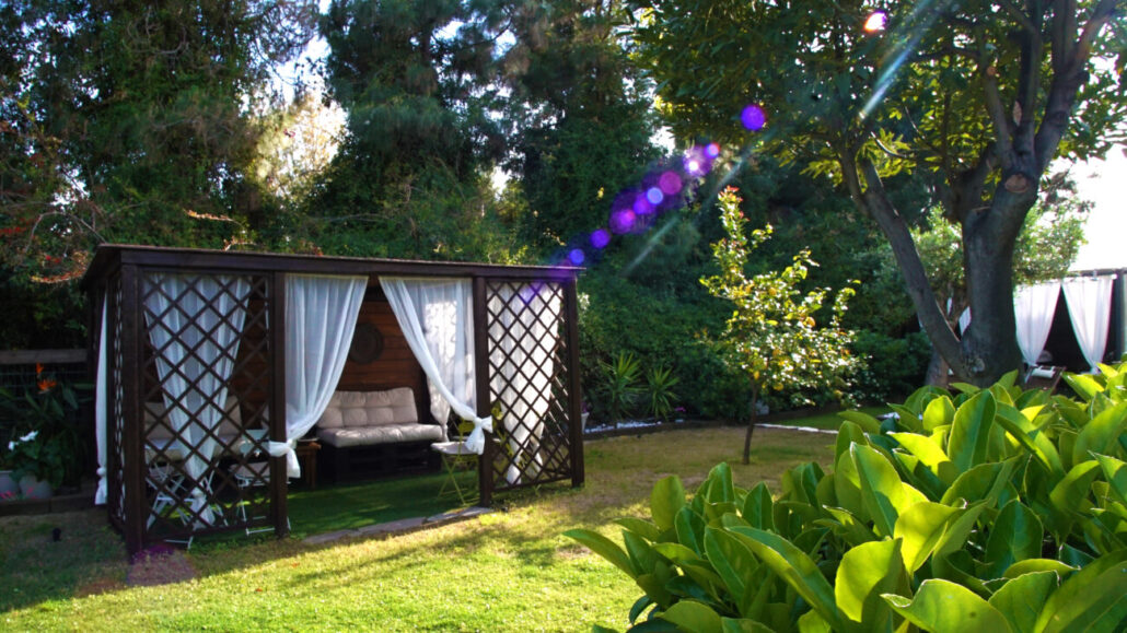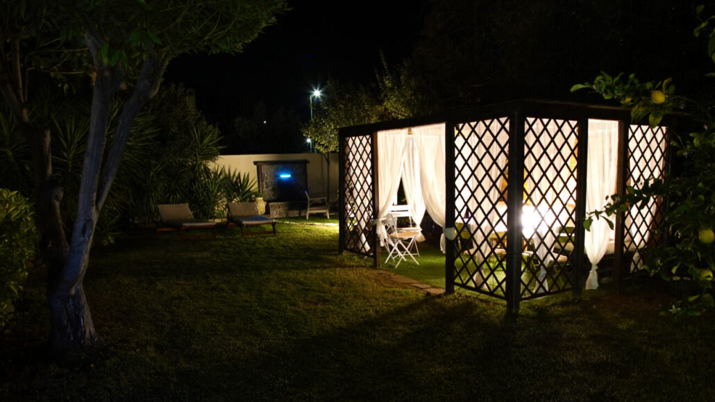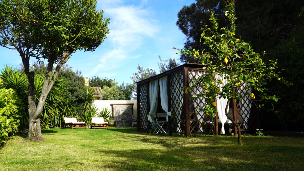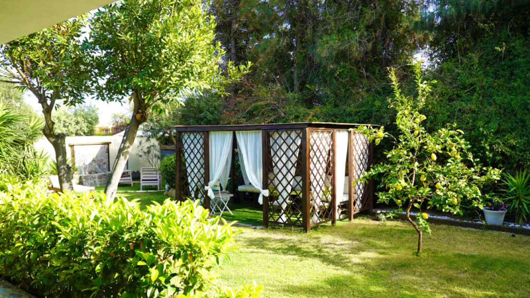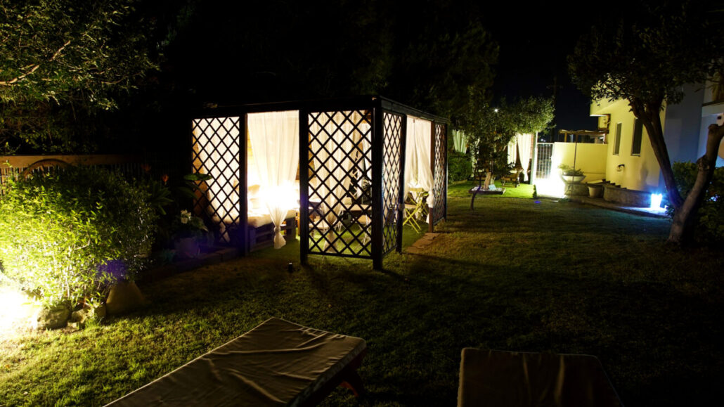 La zona esterna, con ampio giardino e zona relax, è ideale per trascorrere piacevoli momenti di tranquillità e godere della fresca aria estiva.